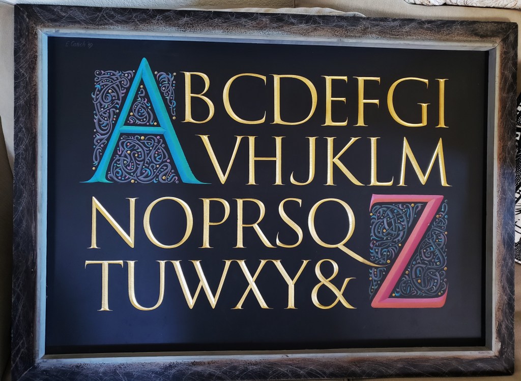 This Imperial Roman Alphabet slate by Father Edward Catich is one of the examples of artwork that is on constant display in the gallery. Visitors and students are given the opportunity to study works like these magnificently hand-cut letters.